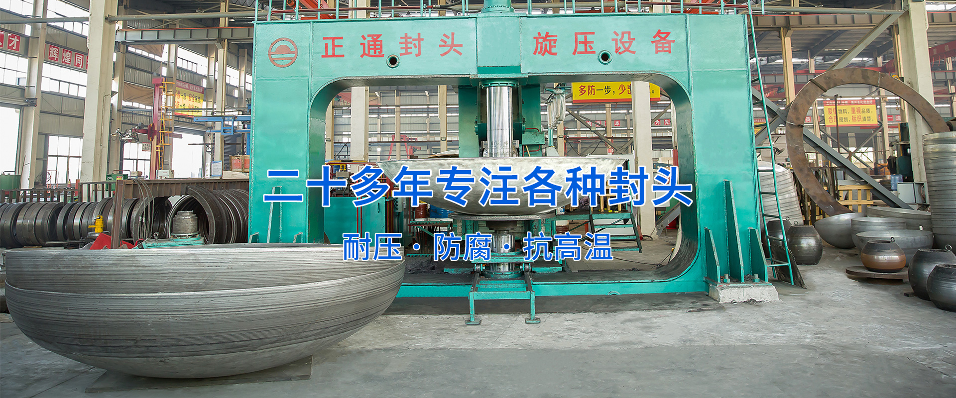 江蘇正通金屬封頭有限公司(原溫州正通金屬封頭有限公司)地處江蘇省泰州市興化市張郭鎮(zhèn),毗鄰寧靖鹽高速、泰州火車(chē)站、揚(yáng)州泰州機(jī)場(chǎng),交通便利。公司占地面積40000平方米,建筑面積27800平方米,總投資1.2億元人民幣,注冊(cè)資本5688萬(wàn)元人民幣。主要設(shè)備有10000T,5000T,2000T,1000T,315T,250T,200T油壓機(jī)各一臺(tái),800T,500T油壓機(jī)各兩臺(tái), 4.2米、7.2米、11米壓鼓旋壓機(jī)組各一套,2米旋壓機(jī)、1.8米球體旋壓機(jī)各一臺(tái),3米旋壓機(jī)兩臺(tái)、自動(dòng)焊割設(shè)備多臺(tái),以及相配套的退火爐,射線(xiàn)探傷機(jī),理化檢測(cè)等輔助設(shè)備60多臺(tái),是目前國(guó)內(nèi)設(shè)備種類(lèi)比較齊全的封頭專(zhuān)業(yè)生產(chǎn)廠(chǎng)家之一。